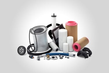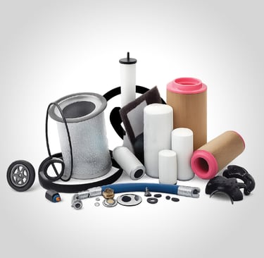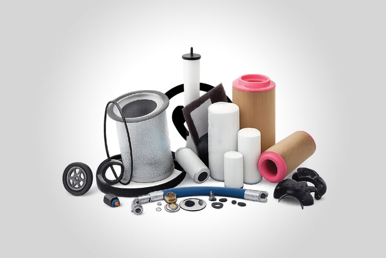 Our extensive product range includes air filters, oil filters, air/oil separators, sensors, thermostatic kits, MPV kits, gauges, lip seals, drain valve kits, and high-quality compressor oil.